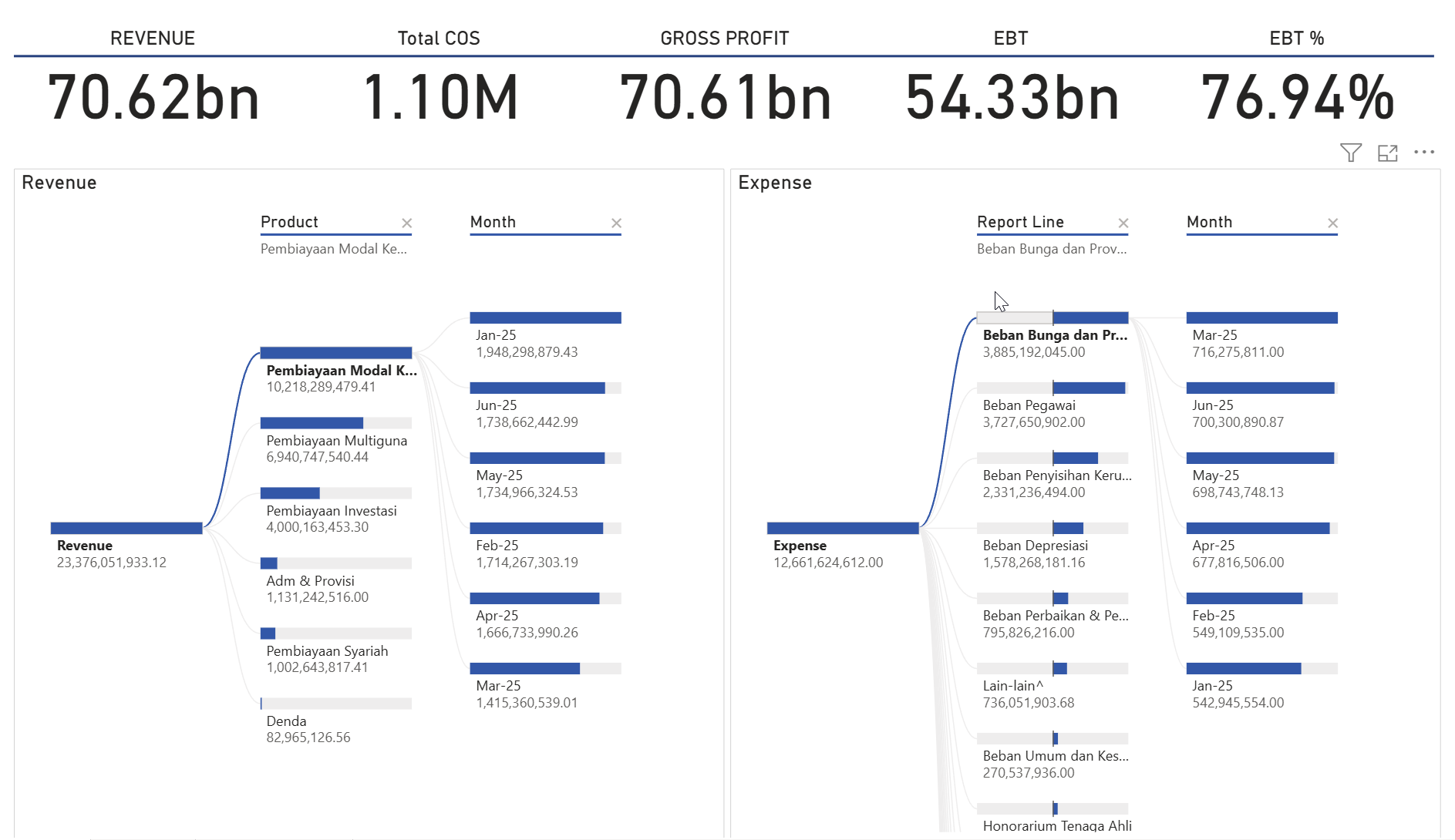 Astina ERP juga memiliki fitur Business Intelligence bawaan yang memungkinkan analisis data keuangan secara instan, Anda dapat memperoleh laporan dan dashboard terkini begitu data transaksi diinput oleh PIC transaksi.