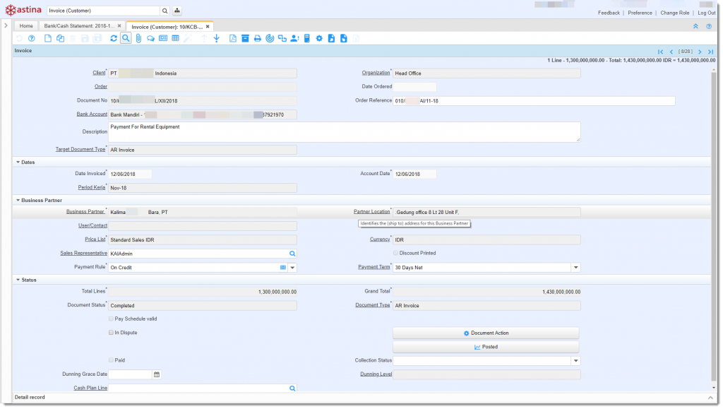 - Portfolio kustomer langsung terhubung dengan transaksi dokumen yang terjadi, yaitu naik jika ada tagihan dan turun jika ada pembayaran, pengembalian, atau credit note