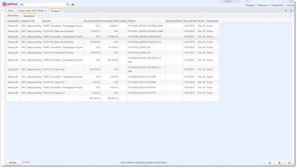 Astina ERP menggunakan satu table jurnal terpadu untuk menyimpan semua data keuangan dan data pengendalian, sehingga menghilangkan kebutuhan rekonsiliasi antar modul.