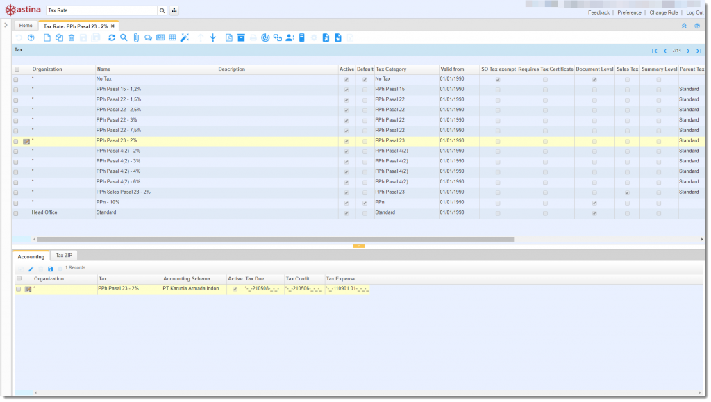 - Setelah pengaturan pajak dikonfigurasi, sistem membuat entri akuntansi nya secara otomatis.